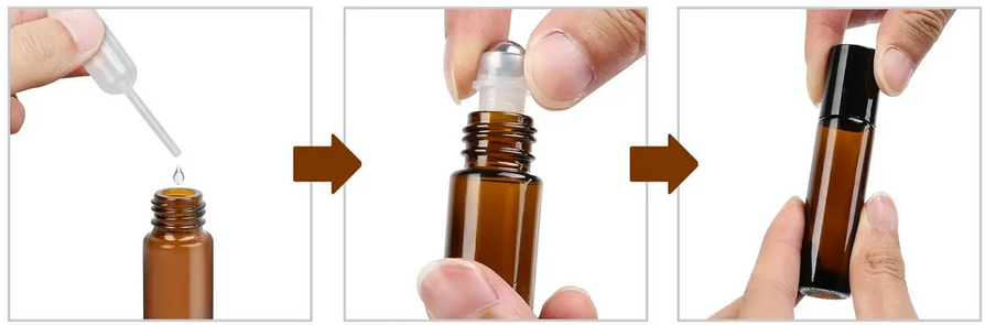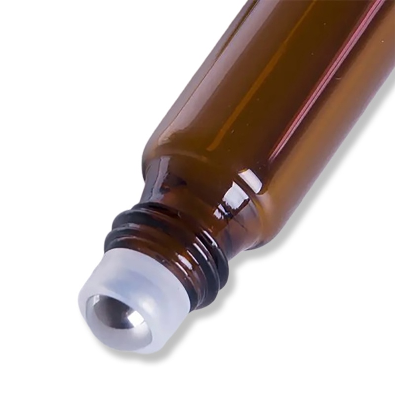 Le flacon roll-on 10 ml muni d'un support à bille rotative libérera votre préparation aromathérapie ou cosmétique de manière homogène sur une surface d'environ 7 mm (diamètre de la bille), même avec les préparations les plus visqueuses (à base d'huile de Ricin par exemple).